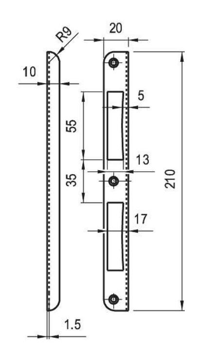 Elzett MIDI 7/8 bevésőzáraknál alkalmazott visszacsípett zárólemez (ellendarab)
