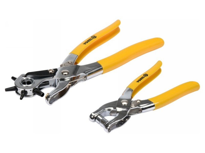 VOREL Bőrlyukasztó fogó revolveres és bőrszegecselő + 100 db szegecs