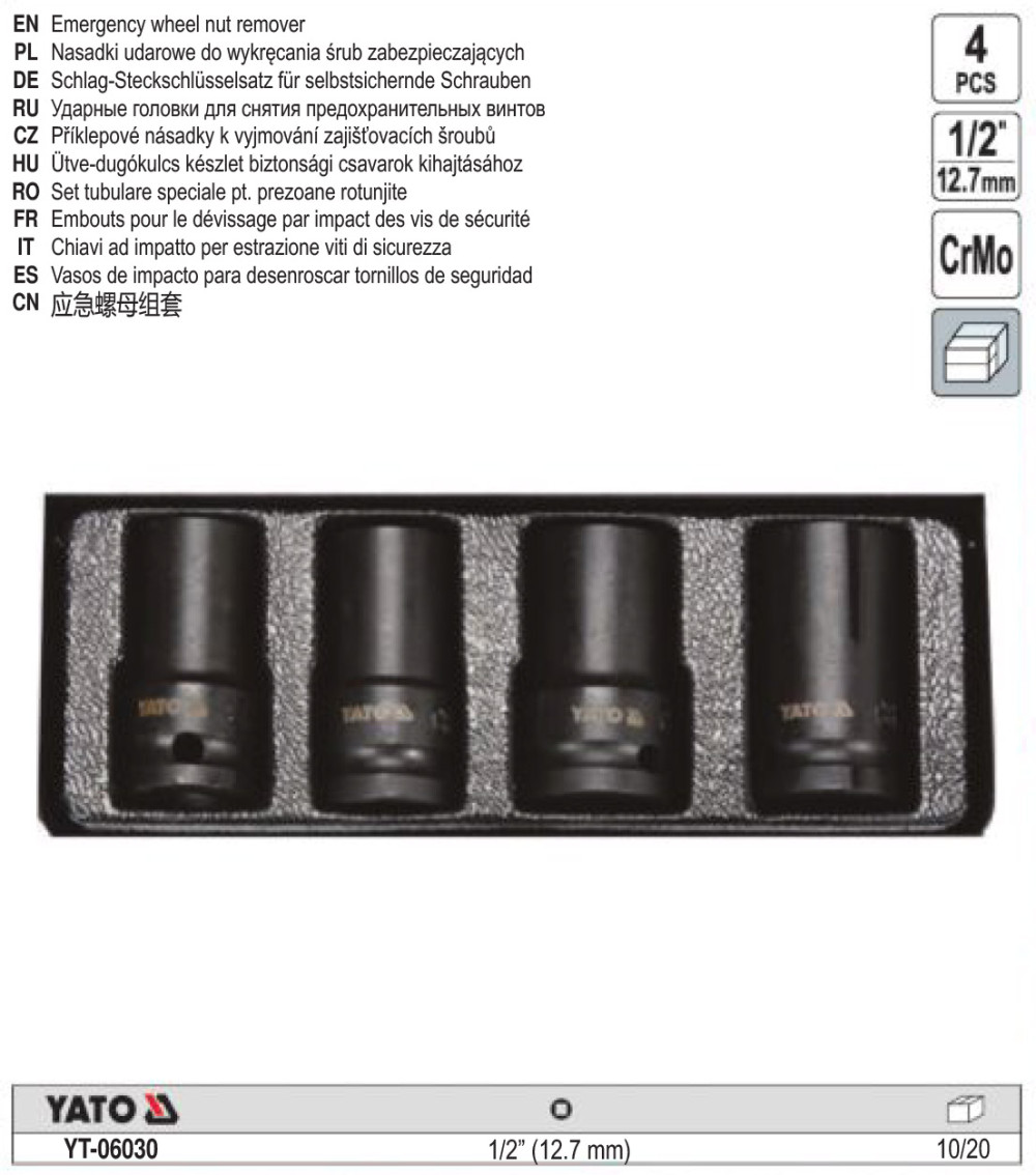 YATO YT-06030 Roncsolt csavar leszedő gépi dugókulcs készlet 4 részes 1/2 Col 17-26 mm CrMo