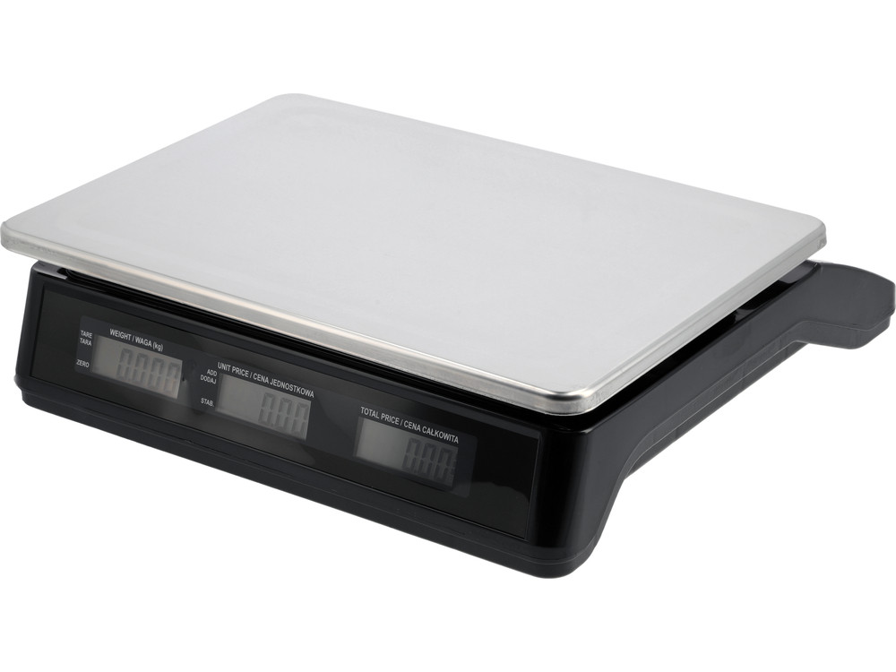 Ez az 5 g-os pontosságú elektronikus mérleg lehetővé teszi akár 40 kg-os termékek gyors és precíz mérését. A kétoldalas LCD kijelző LED-es háttérvilágítással biztosítja a könnyű olvashatóságot mind a kezelő, mind a vásárló számára.