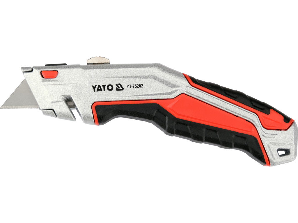 YATO YT-75202 Behúzható tarpézpengés kés övvágó / dobozbontó funkcióval +3 db pótpengével
