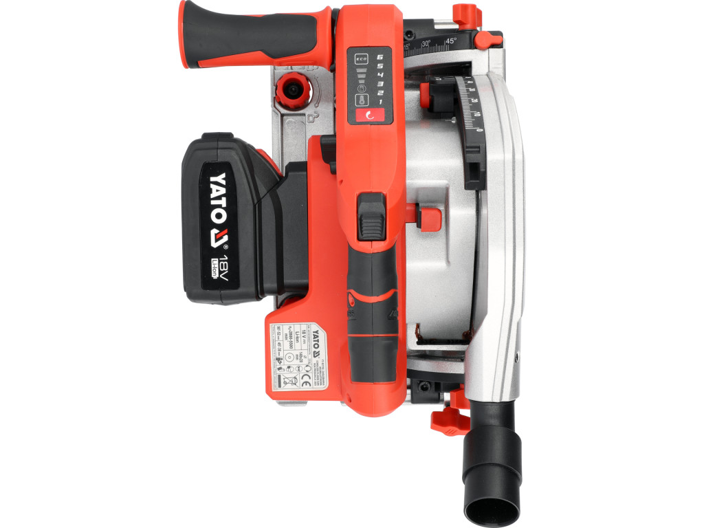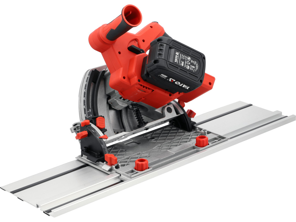 YATO YT-821701 Akkumulátoros merülőfűrész 18V 4Ah 140mm szénkefe nélküli motor + vezetősín (1db 4Ah akku +töltő)