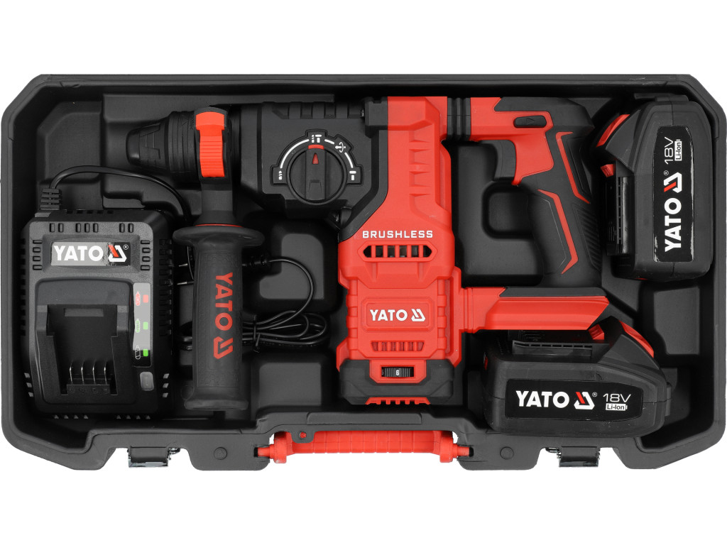 YATO YT-827724 Akkuulátoros fúrókalapács 18V 4Ah SDS Plus 2,4J szénkefe nélküli motor (2x akku + töltő)