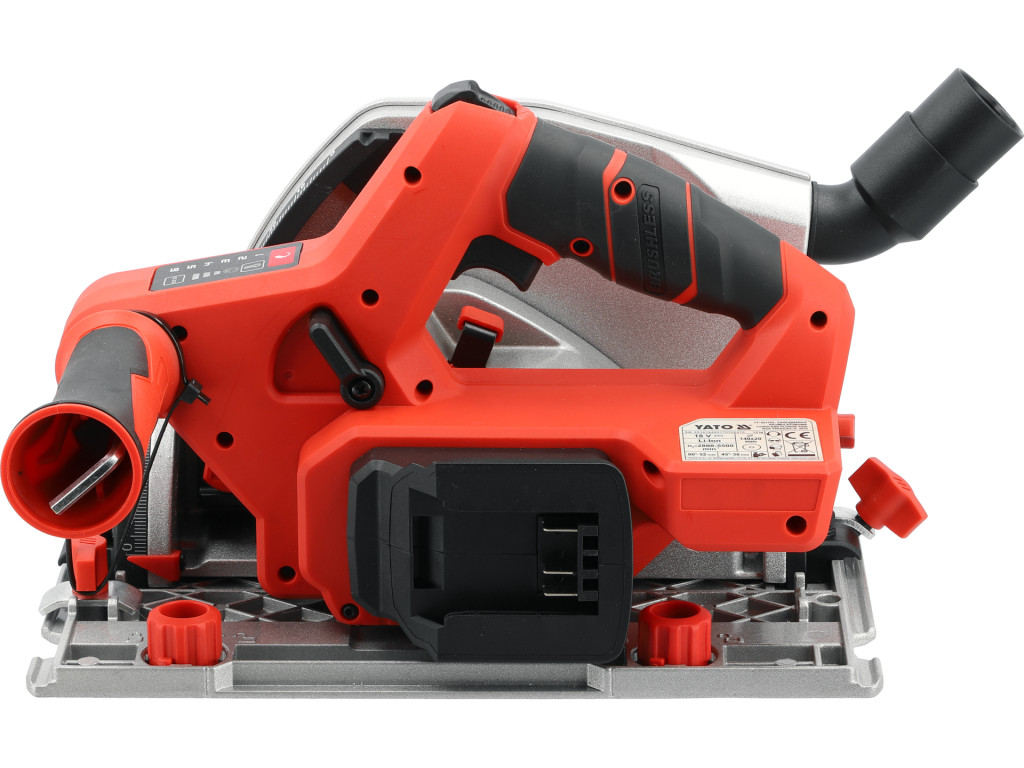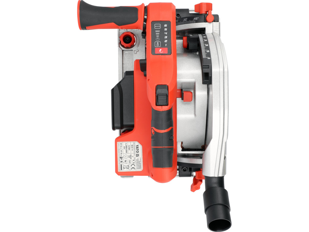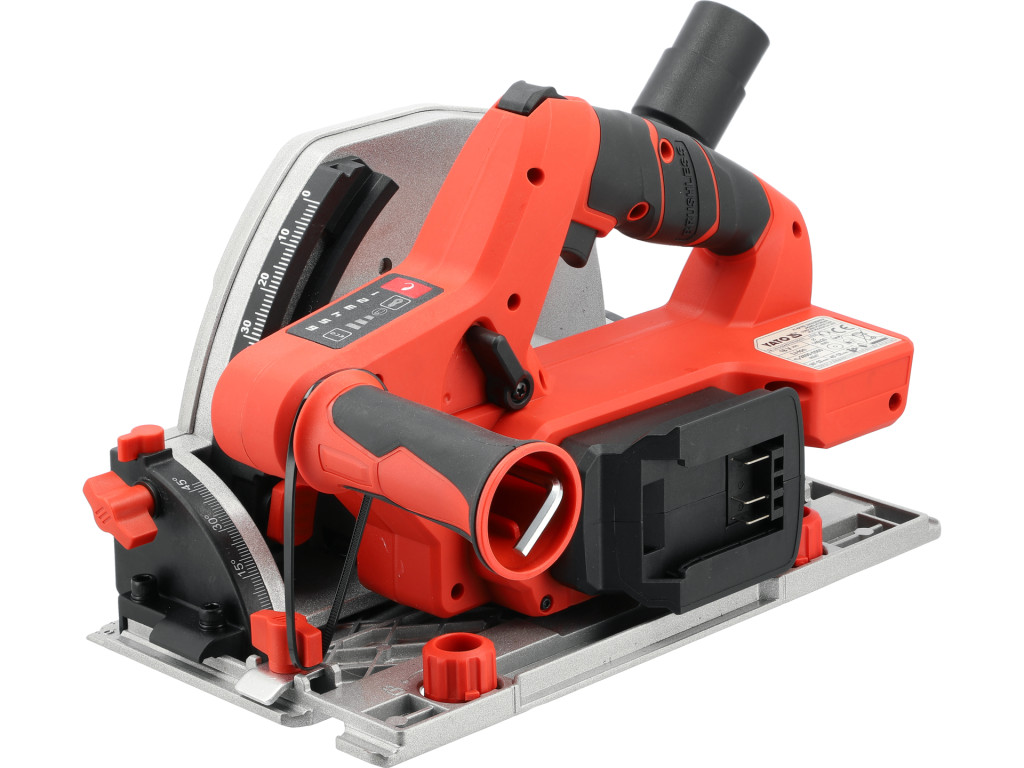 Yato YT-821702 Akkumulátoros merülőfűrész 140mm szénkefe nélküli motorral vezetősínnel, 2db szorítóval (akku és töltő nélékül)