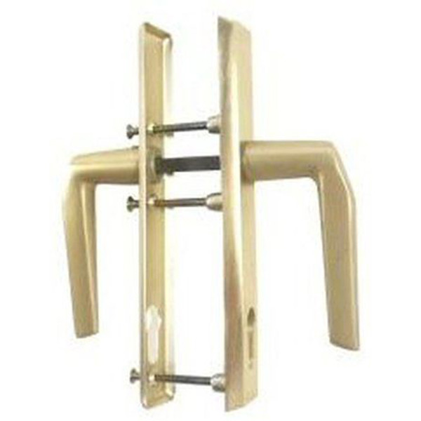 Törésvédő pajzsként is funkcionáló kilincs garnitúra Euro Elzett 3477 többpontos zárhoz, F2 színben. Kizárólag 3477-es zárhoz megfelelő, ugyanis az átmenő csavarok számára csak annál a típusnál van kialakítva a furat a zártesten.